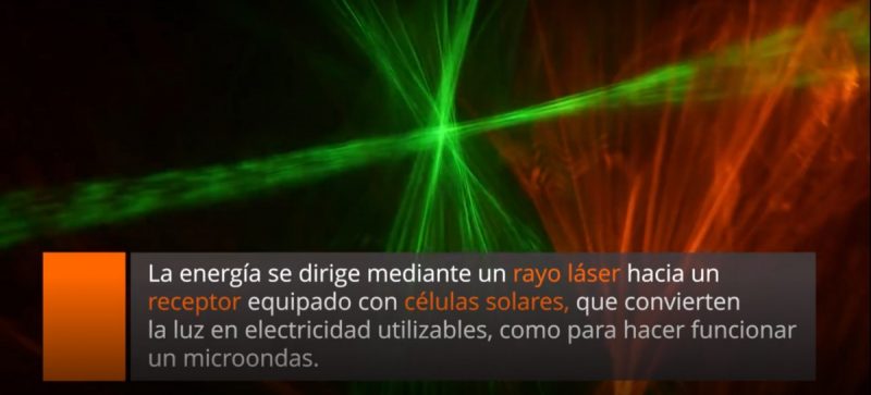 La clave detrás de esta tecnología es ser capaz de enviar energía a través del aire usando luz, con el objetivo de convertirla en electricidad. Esto es posible usando un láser infrarrojo que al apuntarlo a un espejo dirige esta luz a unas células solares, que transforman la luz en energía.
