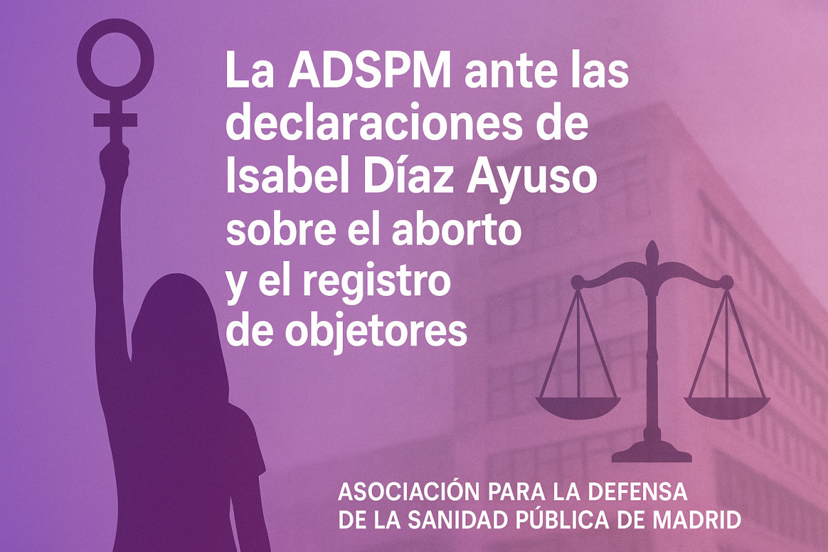 La Asociación para la defensa de la Sanidad Pública de Madrid (ADSPM) expresa su más firme rechazo a las declaraciones de la Sra. Ayuso, quien ha afirmado que las mujeres que deseen abortar “se vayan a otro lado”.