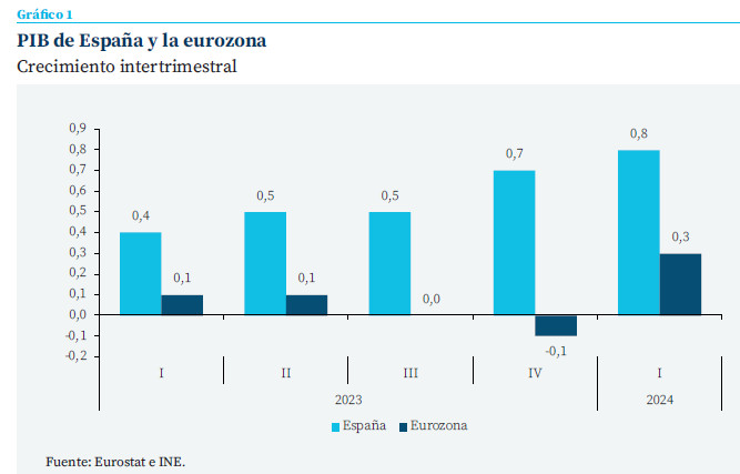 La economía española sigue creciendo a un ritmo sostenido, superando ampliamente la media europea. Se prevé que el PIB avance un 2,5 % este año y un 1,8 % el próximo, unos resultados respaldados por el superávit externo, el desendeudamiento del sector privado y, en menor medida, los fondos Next Generation. Todo ello permitirá la creación de 730.000 nuevos puestos de trabajo en el próximo bienio –