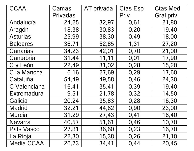 - Ctas Esp Priv = Consultas por habitante y año a especialistas del sector sanitario privado