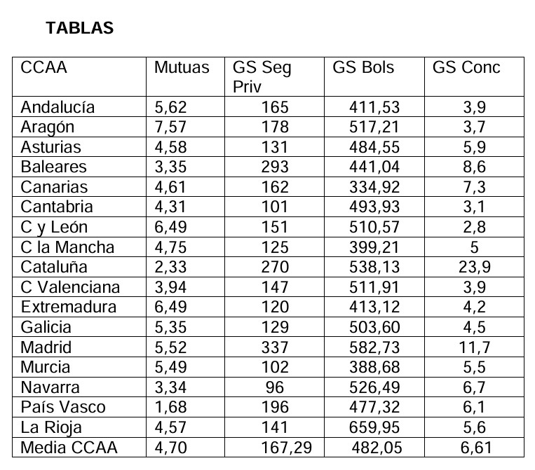 - GS Conc privados = Porcentaje del gasto sanitario dedicado a contratación con centros privados