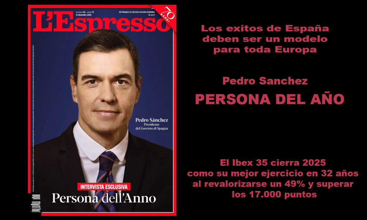 “El rechazo a las políticas neoliberales es el éxito del modelo español, que no es otro que el modelo socialdemócrata”, ha añadido el líder del Ejecutivo en un tuit que ha dicho que es “un honor” recibir este reconocimiento. Según detalla L’Espresso, cumplir los objetivos de “más derechos, más libertad” y también “empleo, desarrollo, redistribución de la riqueza, defensa de los derechos civiles y lucha contra las grandes tecnológicas” es lo que ha impulsado a Sánchez a ocupar este título de persona del año, figurando en la portada del nuevo número de la revista histórica italiana.