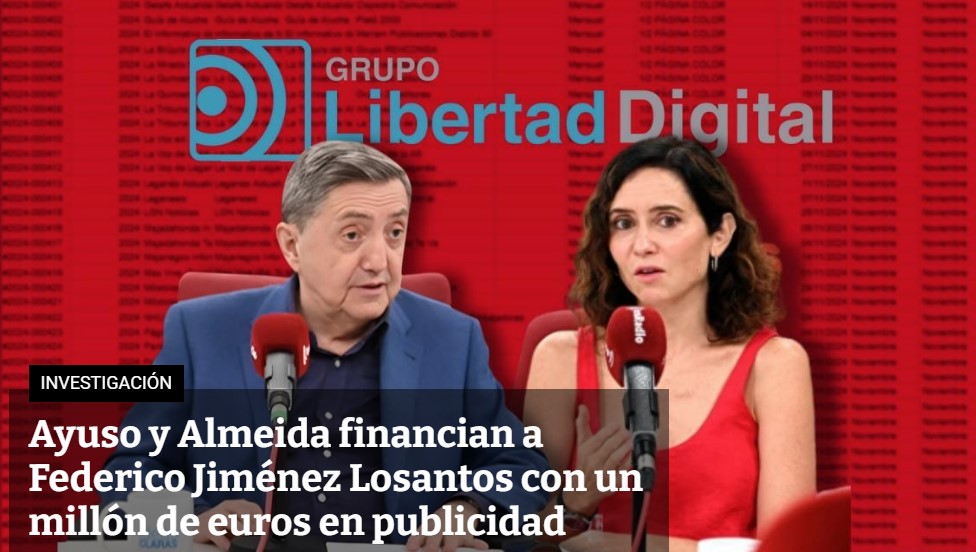 - Sin la inyección en publicidad institucional de la Comunidad de Madrid, el Grupo Libertad Digital hubiera cerrado 2024 con pérdidas