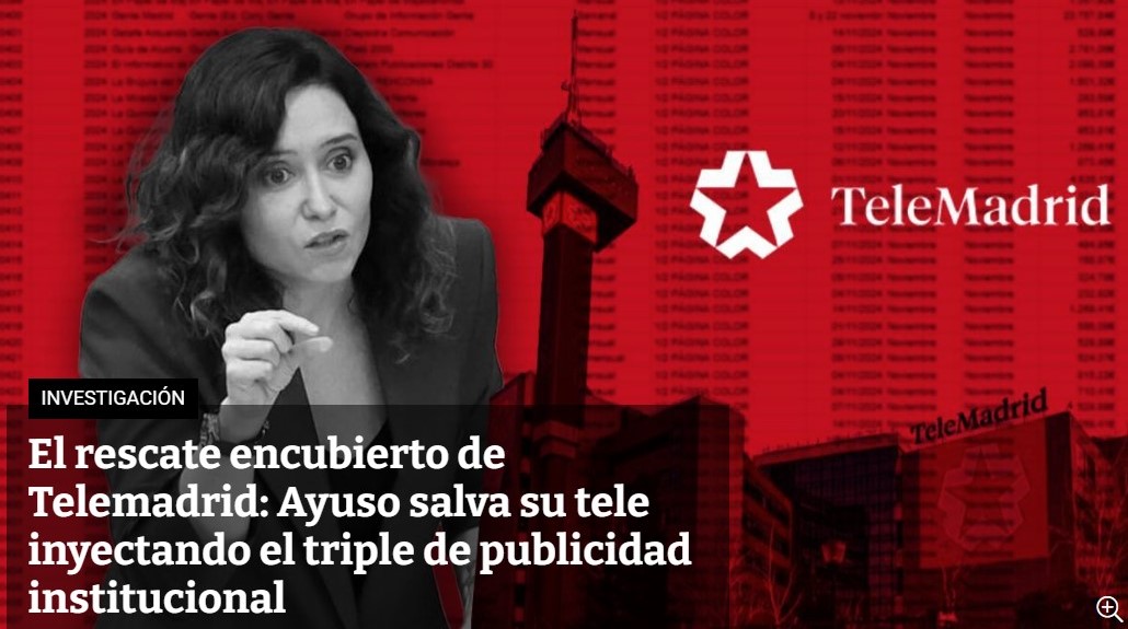 - El Gobierno de Ayuso gasta en Telemadrid diez veces más que en 2020 y la convierte en el primer medio de su reparto